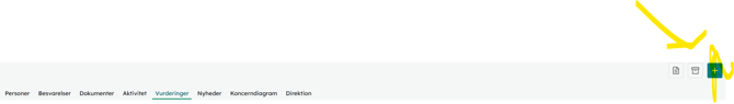 Først åbner du den klient, som det drejer sig om. Herefter trykker på fanen "Vurderinger". Når du er inde på denne fane, kan du foretage en egenvurdering ved at trykke på det mørkeblå plustegn oppe i højre hjørne.
